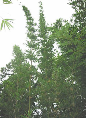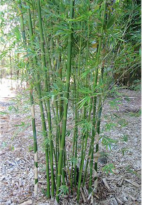 BAMBUSA is a genus of tropical and subtropical clumping bamboo, usually giant, with numerous branches at a node, one or two much larger than the rest.