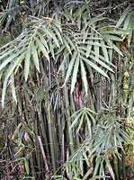 BAMBUSA is a genus of tropical and subtropical clumping bamboo, usually giant, with numerous branches at a node, one or two much larger than the rest.