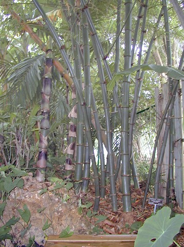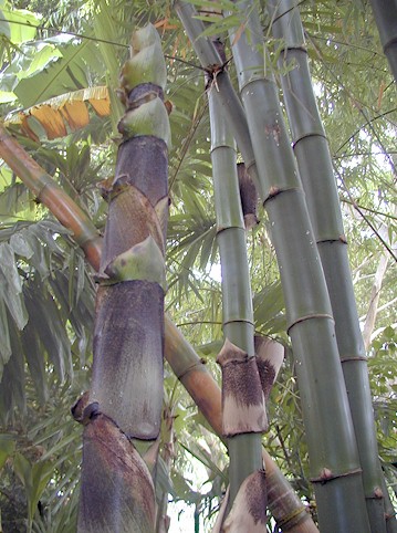 BAMBUSA is a genus of tropical and subtropical clumping bamboo, usually giant, with numerous branches at a node, one or two much larger than the rest.