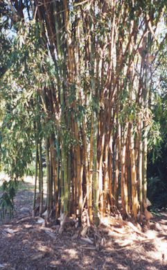 BAMBUSA is a genus of tropical and subtropical clumping bamboo, usually giant, with numerous branches at a node, one or two much larger than the rest.